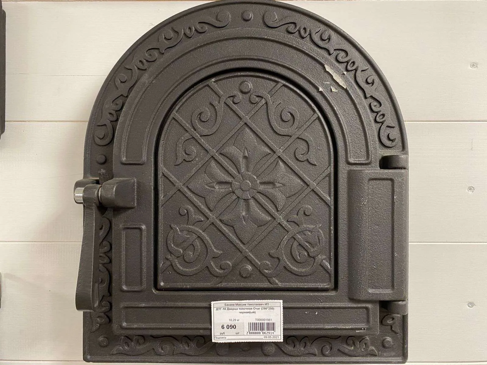 Массивная топочная дверка с узорами на крышке и рамке украсит самую шикарную печь.