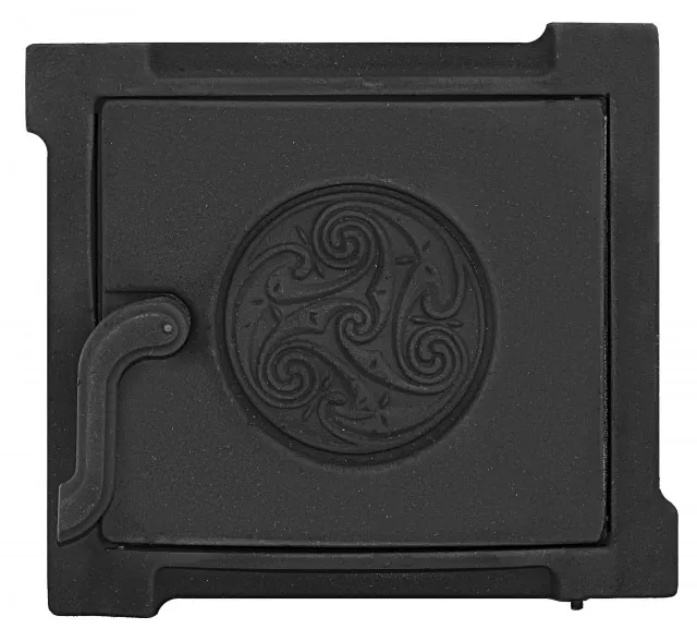 Материал - чугун, окрашена в черный цвет. Дверца уплотненная и герметичная, имеет выпуклую радиальную форму, а также оснащена "Замком автоматического запирания". Крышки дверок представленной серии выполнены в виде вогнутого сферического зеркала, в котором и заключается отличительная особенность данной серии внутренняя поверхность крышки работает как плоскость-отражатель. Вогнутая поверхность отражает тепловые лучи и создает тепловой фокус по центру печи, что позволяет нагревать печь одновременно во всех направлениях, а крышке дверки-дефлектора нагреваться до 80-100С. Декоративный выступ по всему периметру рамки идеально скрывает монтажные швы при облицовке печи металлическим листом.
